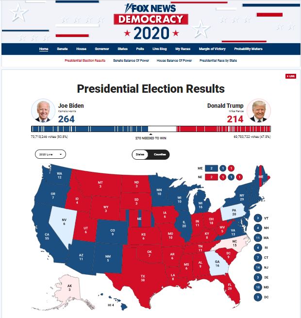 Итого: если в указаных штатах победят нынешние лидеры, то "счет" будет 270 против 268 в пользу Байдена.