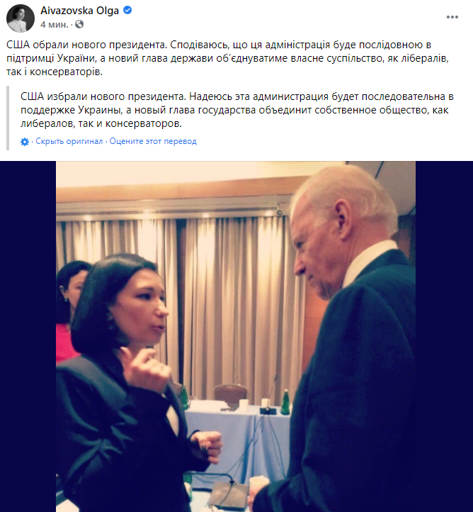 23:25 "Официальные лица Украины поздравили Байдена с победой.