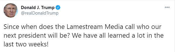 "С каких это пор отстойные медиа называют, кто будет нашим следующим президентом? Мы все многому научились за последние две недели", - заявил Трамп.