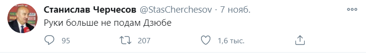 В пародийном аккаунте главного тренера сборной России по футболу Станислава Черчесова сразу после видео с мастурбацией появилась запись "руки больше не подам Дзюбе".