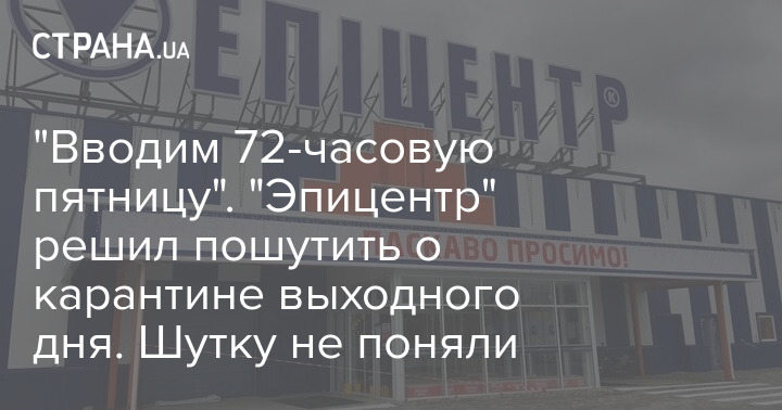 "Вводим 72-часовую пятницу". "Эпицентр" решил пошутить о карантине выходного дня. Шутку не поняли