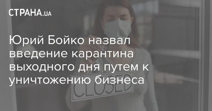 Сопредседатель "Оппозиционной платформы - За жизнь" Юрий Бойко назвал введение правительством "карантина выходного дня" путем к уничтожению бизнеса.