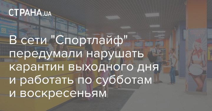 Сеть фитнес-клубов "Спортлайф", которая намеревалась продолжить работу на уик-энд, несмотря на карантин выходного дня, передумала. Руководство, видимо, все же решило соблюдать правительственное постановление о карантине.
