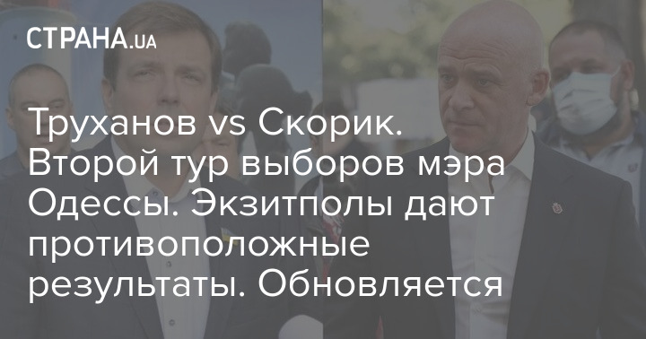 20:05 Экзитполы показывают диаметрально противоположные данные о победителях второго тура выборов мэра Одессы.