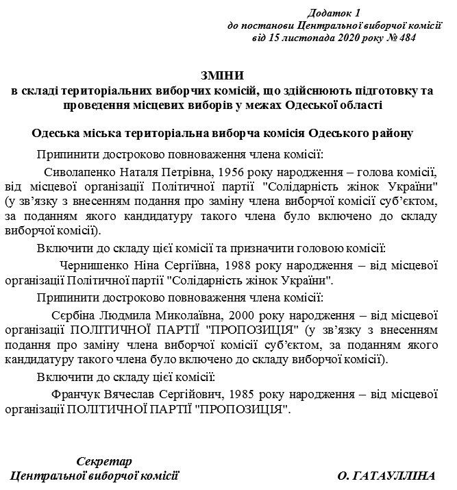 20:00 Документ ЦИК о переназначении Чернышенко главой городского теризбиркома Одессы.