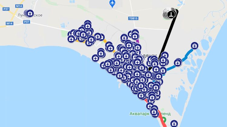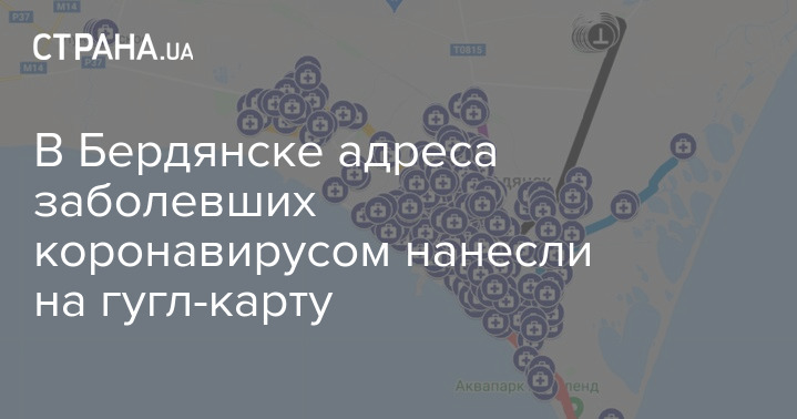 В Бердянске медики обнародовали в сети карту, на которой обозначены адреса людей, больных коронавирусом. Также черным цветом выделено кладбище №2, где хоронят умерших от Covid-19, и ведущая к нему дорога. На гугл-карту нанесли более 500 условных точек с привязкой к конкретному дому.