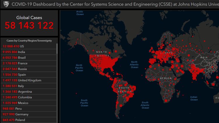 По данным на 22 ноября число зараженных на планете перевалило за 58 миллионов, фото arcgis.com