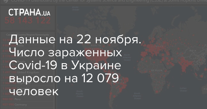 По состоянию на утро воскресенья 22 ноября, в Украине подтвердились 12 079 новых случаев заражения коронавирусом.