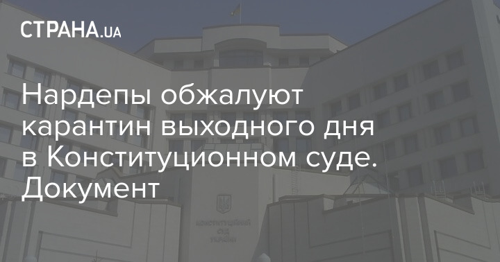 Конституционный суд Украины получил представление 48 народных депутатов, которые хотят обжаловать отдельные положения постановления Кабинета министров Украины о "карантине выходного дня", предусматривающие ряд ограничений для деятельности субъектов хозяйствования в субботу и воскресенье.