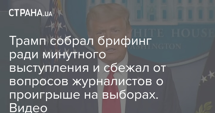 Трамп собрал брифинг ради минутного выступления и сбежал от вопросов журналистов о проигрыше на выборах. Видео