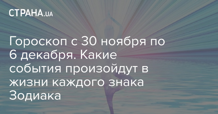 В период с 30 ноября по 6 декабря будут складываться события, которые приведут к прогрессу, изменениям и росту. Астрологи советуют в этот период принять наиболее важные для себя решения, избавиться от страхов, положиться на счастливый случай и удачу.