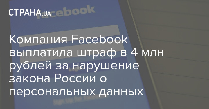 Компания Facebook выплатила штраф в 4 млн рублей за нарушение закона России о персональных данных