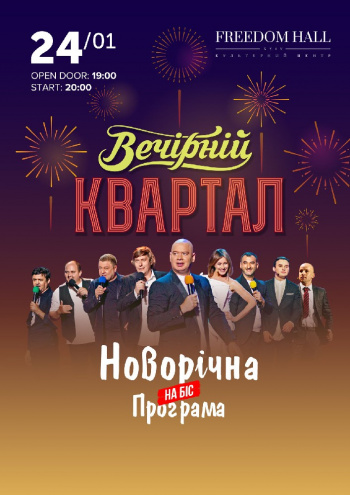 22 декабря, вторник, Дворец "Украина". Новогодний "Вечерний квартал", телесъемка. Билеты от 180 до 4000 гривен. Именно там "кварталовцы" запишут шоу, которое будет транслироваться по телевидению в новогоднюю ночь.