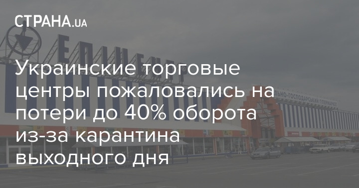 Падение оборотов в украинских ТРЦ за период действия карантина выходного дня составили 30-40%, сообщили агентству в УСТЦ.