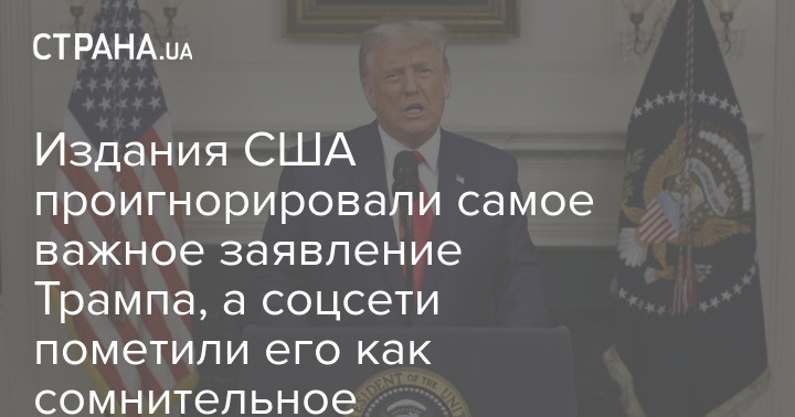 Издания США проигнорировали самое важное заявление Трампа, а соцсети пометили его как сомнительное