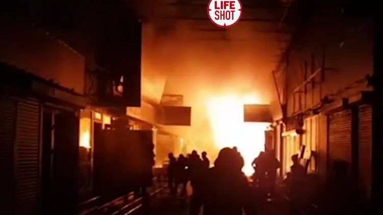 В российском Ростове-на-Дону загорелся павильон с фейерверками. Скриншот: Telegram/Life Shot