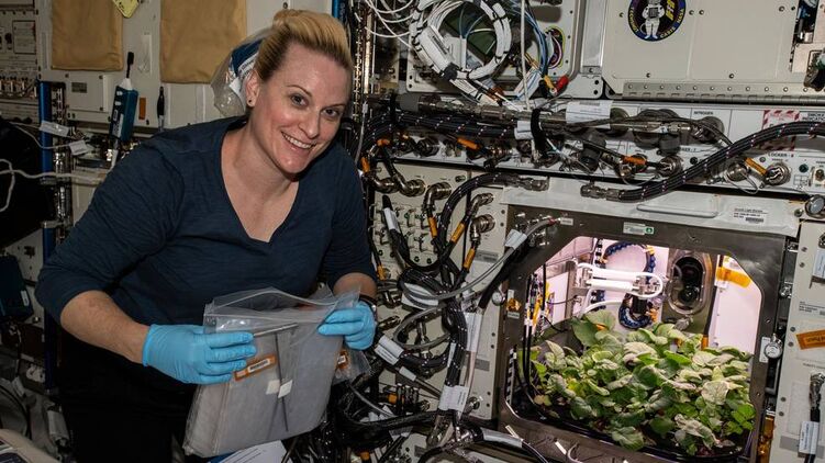 Астронавт НАСА Кейт Рубинс собрала урожай редиса, выращенный на борту Международной космической станции.