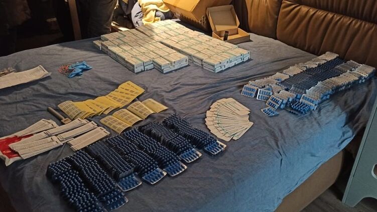 При проведении 11 санкционированных обысков на территории Киева и Киевской области было изъято почти 200 тысяч поддельных таблеток, производственное оборудование, фасовочный материал для готовой продукции, черновые записи и другие вещественные доказательства. Стоимость изъятой продукции составляет более 4 млн гривен.