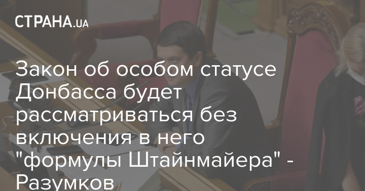 Председатель Верховной Рады Украины Дмитрий Разумков заявил, что при продлении действия закона об особом статусе Донбасса в него не будут включать "формулу Штайнмайера".