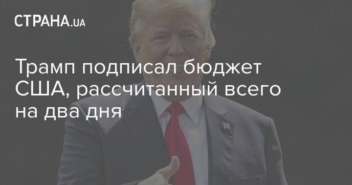 Американский президент Дональд Трамп подписал бюджет, который рассчитан на два дня, чтобы избежать прекращения финансирования федеральных ведомств ("шатдауна") в полночь пятницы по местному времени.