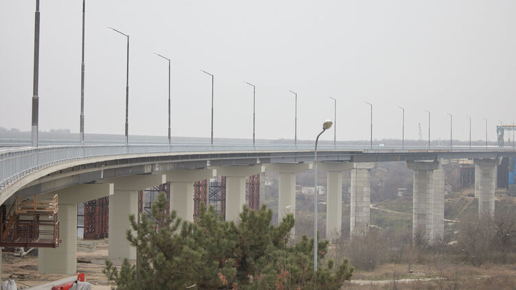 Запорожский мост, протяженность которого более 9 километров, состоит из шести транспортных развязок, в состав которых входит 27 искусственных сооружений. Работы начались в апреле 2020 года, спустя восемь месяце открыта первая часть моста. Полностью закончить мост, по словам Зеленского, хотят уже в 2021 году.
