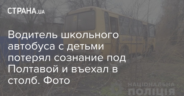 Водитель школьного автобуса с детьми потерял сознание под Полтавой и въехал в столб. Фото
