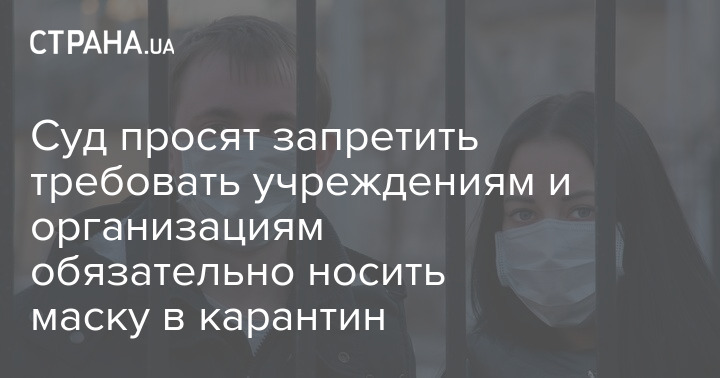 В частности, суд просят остановить какой-либо локдаун и карантин до решения дела по существу, запретить учреждениям и организациям всех форм собственности на всей территории Украины требовать одевать маску.