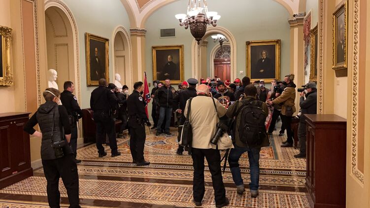 Сторонники Трампа уже прорвались в здание Конгресса, расположенное на Капитолийском холме, и находятся около палаты Сената.