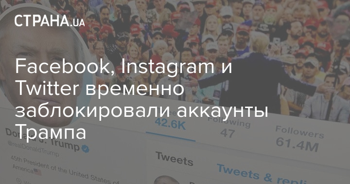 Социальные сети Facebook и Instagram заблокировали аккаунт действующего президента США Дональда Трампа на 24 часа. Ранее подобное решение приняло руководство Twitter, там страница главы государства заблокирована на 12 часов.