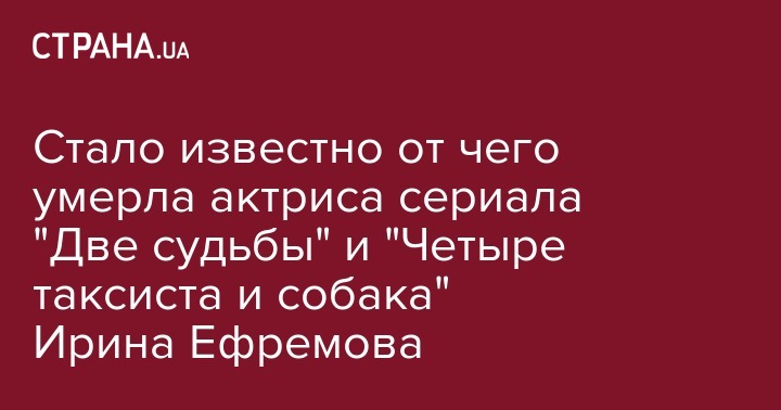 Стало известно от чего умерла актриса сериала "Две судьбы" и "Четыре таксиста и собака" Ирина Ефремова