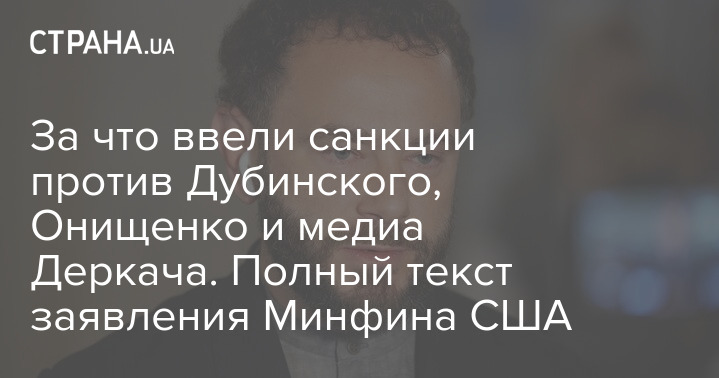 "Сегодня Управление по контролю за иностранными активами Министерства финансов США (OFAC) приняло дополнительные меры против семи физических лиц и четырех организаций, которые являются частью связанной с Россией сети иностранного влияния, связанной с Андреем Деркачем.