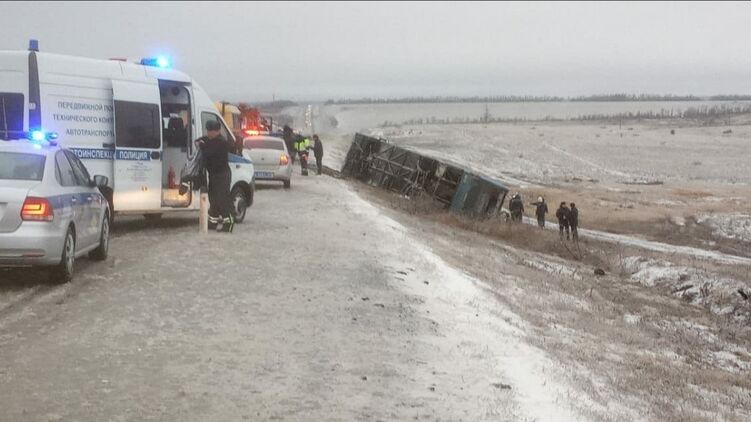 Автобус из Москвы перевернулся в Ростовской области. Телеграм-канал РИА Новости