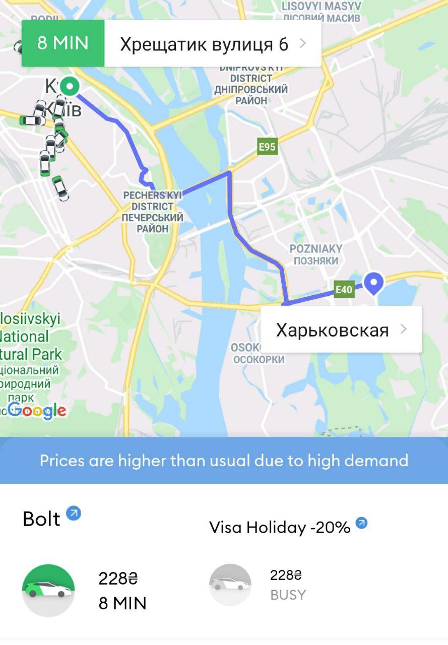 А от Майдана на Левобережную дешевле чем за 200 гривен не уехать (обычно этот маршрут обходится не дороже 100 грн).