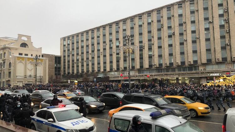 В России на акциях протеста в поддержку оппозиционного политика Алексея Навального, которые проходят в субботу, 23 января, по состоянию на 15:02 по Киеву задержали уже 1090 человек.
