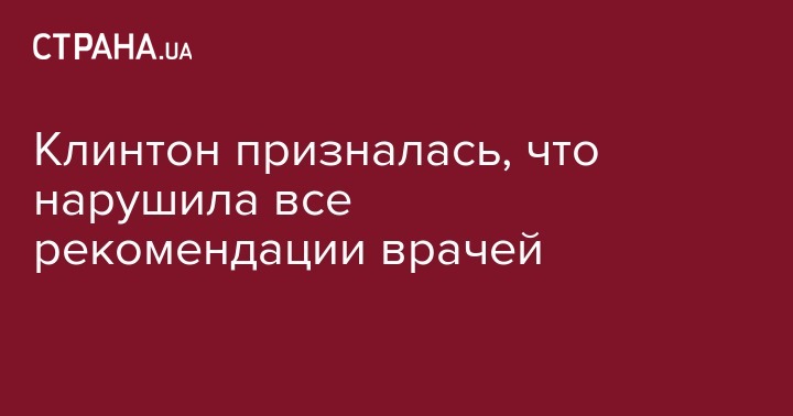 Кандидат в президенты США от Демократической партии Хиллари Клинтон рассказала о нарушении предписаний врачей, которые советовали ей постельный режим и никаких публичных выступлений. Об этом сообщает CNN.