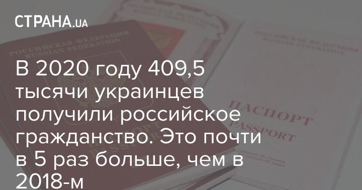 В 2020 году 409,5 тысячи украинцев получили российское гражданство. Это почти в 5 раз больше, чем в 2018-м