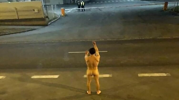 В Польше голый украинец пришел к зданию нелюбимой работы и показал ему неприличный жест. Фото