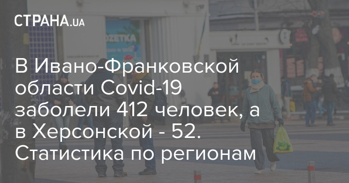 В Ивано-Франковской области Covid-19 заболели 412 человек, а в Херсонской - 52. Статистика по регионам