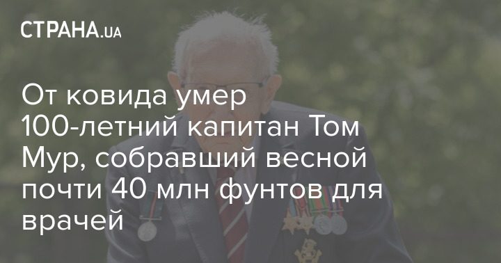 Во вторник, 2 февраля, в Великобритании умер ветеран Второй мировой войны капитан Том Мур, который с помощью пари собрал почти 40 миллионов фунтов стерлингов (около полутора миллиарда гривень) пожертвований для врачей, которые борются с коронавирусом. Ему было сто лет.