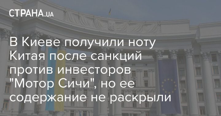 Министерство иностранных дел Украины получило от внешнеполитического ведомства Китая ноту в связи с введением президентом Владимиром Зеленским санкций против китайских акционеров "Мотор Сичи".