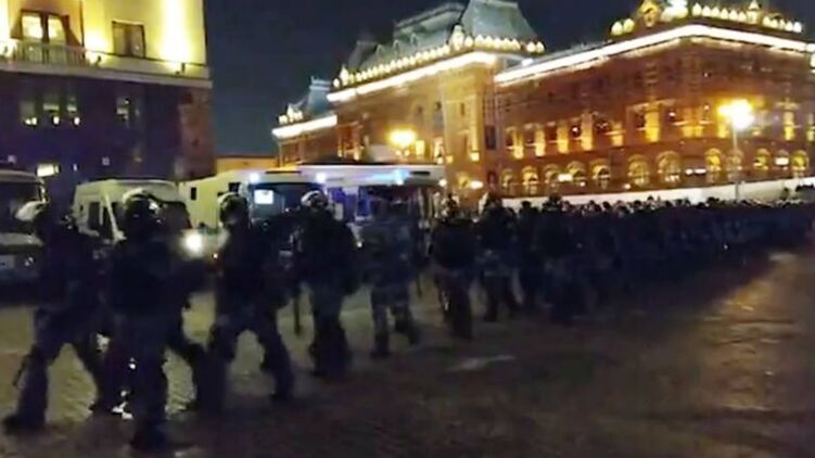 Манежную площадь в Москве оцепили силовики и автозаки, начались задержания. Видео
