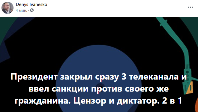 23:18 "Президент закрыл сразу 3 телеканала и ввел санкции против своего же гражданина. Цензор и диктатор. 2 в 1", - отреагировал журналист Денис Иванеско.