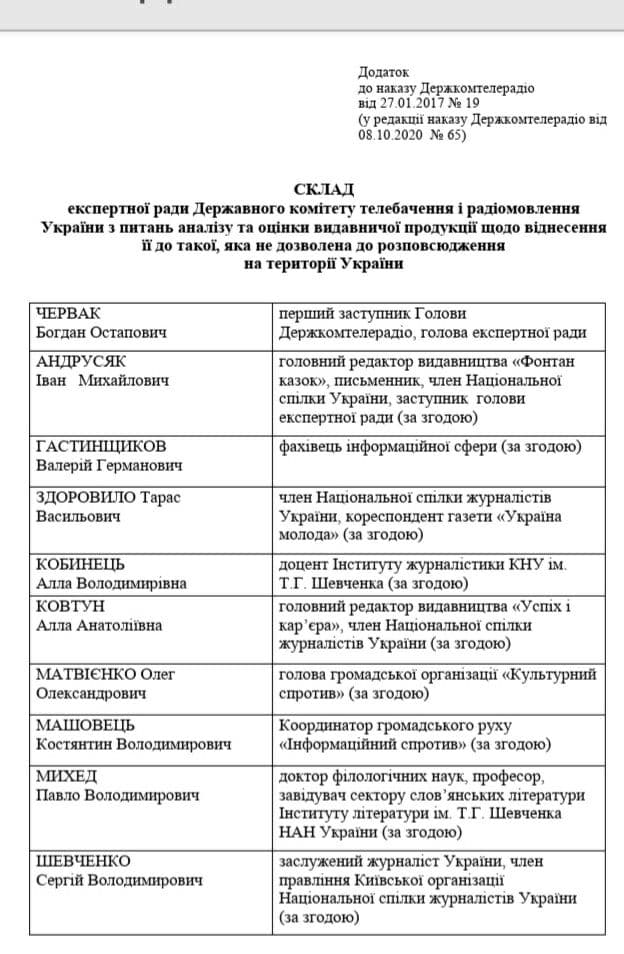 Вот полный список людей, которые решают, какие книги украинцам читать, а какие – нет.