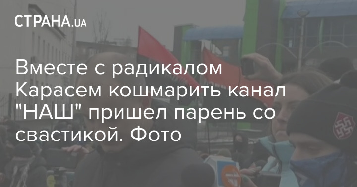Вместе с радикалом Карасем кошмарить канал "НАШ" пришел парень со свастикой. Фото