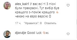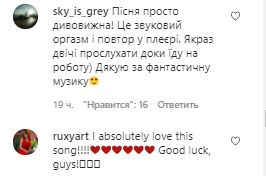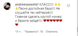 "Это звуковой оргазм и повтор в плеере. Именно дважды прослушать пока еду на работу) Спасибо за фантастическую музыку","I absolutely love this song!!!!", "КЛАСС!!!! Песня достойная Евро!!! Не слушайте тех хейтеров!!!! Главное сделать крутой номер и Европе зайдёт!!", "Чудесный выбор", " У вас все песни были прекрасные".