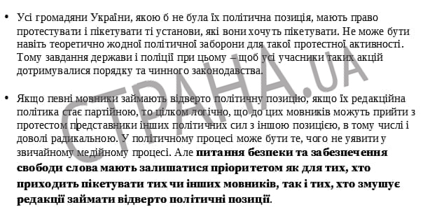 На вероятный вопрос, почему главу Рады не убедили "доказательства" вины телеканалов и лично депутата Козака, методичка отвечает так: "Возможно, господин спикер по-другому воспринял информацию об угрозе, которая существует".