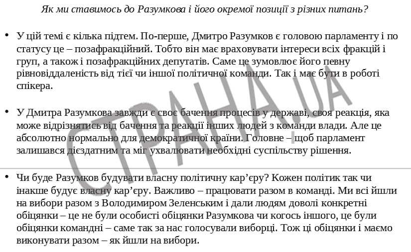 Отметим, что источники "Страны" во фракции "Слуга народа" подтверждают, что намерения у Офиса президента отправить Разумкова в отставку есть. А вот голосов пока под это нет.
