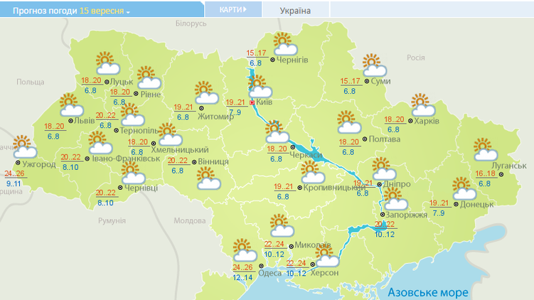 15 сентября в Украине будет тепло и сухо, а ночью заморозки, meteo.gov.ua
