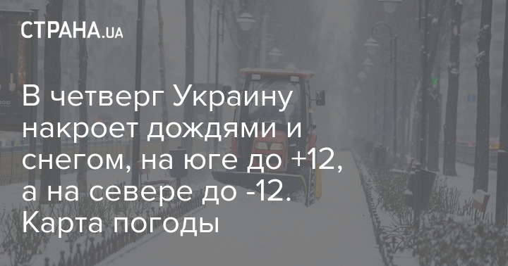 В четверг Украину накроет дождями и снегом, на юге до +12, а на севере до -12. Карта погоды