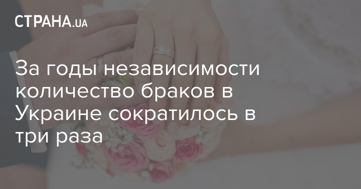 За 30 лет количество браков в Украине уменьшилось в три раза. Об этом свидетельствуют данные OpenDataBot. Так, в 2020 году было официально зарегистрировано 167 900 браков, тогда как в 1991 году - 493 000.